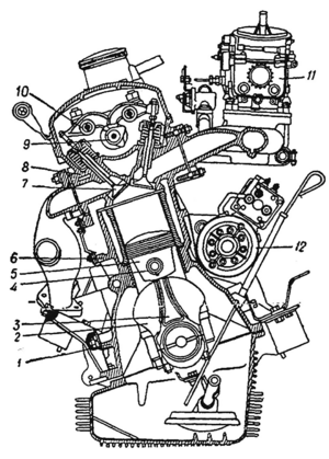 бышкектүү (поршендүү) кыймылдаткыч болот да, жумуш процесси боюнча 4 жана 2 такттуу, күйүүчү майды от алдыруунун жолу боюнча карбюратордуу жана дизелдик болуп бөлүнөт. Автомобиль кыймылдаткычы цилиндринин саны жана жайгашышы (катарлаш, V түрүндө ж. б.), клапанынын орун алышы (жогору же төмөн), цилиндринин жумуш аткаруу көлөмү (литражы), муздатуу түрү (суу, антифриз же аба менен), аткарган кызматы жана ушундай сыяктуу боюнча айырмаланат. Азыркы 4 такттуу автомобиль кыймылдаткычы цилиндрдин блогунан (картери менен) жана бөркүнөн, бышкектен, тээктен (шатундан), муунактуу валдан, күүлөнтүүчү дөӊгөлөктөн, бөлүштүргүч валдан жана башкадан турат. Цилиндринин саны канча көп болсо, кыймылдаткыч ошончо бир калыпта иштейт. Кыймылдаткычтар: радиатор, желдеткич, аба жана май чыпкалары, стартер ж. б. менен жабдылат. Жеӊил жана көлөмү кичине аккумуляторду түзүү шаар ичинде