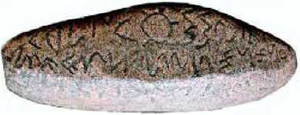 Ад.: Жумагулов Ч. Эпиграфические памятники Киргизии, Ф.; Каллаур В. А. Камень с древнетюркской надписью из Аулиеатинского уезда // ПТКЛА. 1896; Каллаур В. А. Новая археологическая находка в аулиеатинском уезде. Туркестанские ведомости. 1898, № 48, 52.