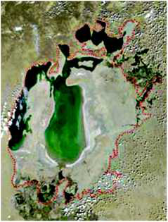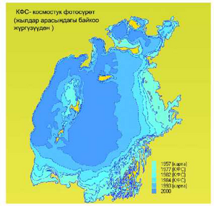 мүнөздөгү чөлдөшүү процессине алып келген. Арал деңизине 1910–1960-жылдары 62 км3 суу куйса, 1961–1970-жылдары 43,3 км3; 1971–1980-жылдары 16,7 км3; 1990-жылы 3,5 км3 суу куйган. Мындан 1961–1977-жылдары Арал деңизине куйган суулардын көлөмү жылына 27,7 км3 азайып, анын 22,6 км3 сугатка жумшалган. Арал деңизинин аянтынын 1/3 бөлүгүнүн кыскарышынан, Кара-Калпак Республикасынын кышы өтө ызгаардуу, жайы өтө ысык жана кургакчыл боло баштаган. Температуранын жылдык орточо амплитудасы 1,5–2°Сге өзгөргөн. Кум дөбөлөрүндө туздуу кыртыштар түзүлө баштап, туздуу чаңдарды пайда кылган көлдүн суусу тартылып кеткен жерлерде чакан көлмөлөр, рельефтин эолдук формалары, шор жерлер ж. б. пайда болгон. Ал эми жер астындагы суулардын төмөндөп кетишинен, алардын минералдашуусу арткан. Аму-Дарыя менен Сыр-Дарыянын алабы шор