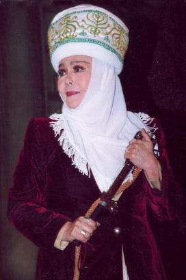 Курманжан датка – Г. Каныметова. Т. Касымбеков, К. Сакта­нов. « Курманжан датка» спектаклин­де. 2003.