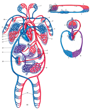 шат. Туюк кан жүрүү системасы бар жаныбарда кан тамыр м-н айланып, кан м-н ткандын ортосундагы зат алмашуу тамырдын капталы (керегеси) аркылуу жүрөт. Адам, омурткалуу жаныбар, кээ бир омурткасыздардын кан жүрүү системасынын башкы органы – жүрөк. Жүрөктөн кан агып чыгуучу тамырлар артерия, ага кан алып келүүчү тамырлар вена деп аталат. Кан жүрүү системасы бакалоор м-н дем алган оймок ооздуулар ж-а балыктарда (эки түрдүү дем алуучулардан башка) кан айлануунун бир тегерегинен, өпкөсү м-н дем алган бардык омурткалуу жаныбарларда ж-а кишиде кан айлануунун эки тегереги (чоң ж-а кичине) болот, к. ошондой эле Жүрөк, Кан айлануу макалаларын.