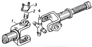 Толук кардан: 1 – вилка; 2 – крестовинанын цапфа­сынын тиреги; 3 – капкагы; 4 – крестовина.