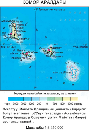 жактан 3 аралга [Нгазижа (Гранд-Комор), Нжуа­ни (Анжуан), Мвали (Мохели)] бөлүнөт. Борбо­ру – Морони шаары (Нгазижа аралында). Акча бирди­ги – комор франкы.