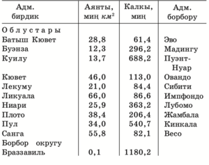 46,1%, 65 ж-а андан ашкан курактагылар 2,8%. Калктын орточо курагы 16,3 жыл (2008). Өмүрдүн күтүлгөн орточо узактыгы 53,8 жыл (эркектердики 52,5, аялдардыкы 55 жыл). 100 аялга 99 эркек туура келет. Миграция сальдосу оң мааниде: 1000 тургунга 2,5 (2008). Калкынын орточо тыгыздыгы: 1 км2 жерге 11 адам (2008; Африкадагы калк эң сейрек отурукташкан өлкөлөрдүн бири). Өлкөнүн түштүгүндө калк эң жыш (1 км2 жерге 40 адамга чейин), түндүгүндө сейрек (1 км2 жерге 1 адамдай) отурукташкан. Шаар калкы 62%. Ири шаарлары: Браззавиль (калкы 1180 миң), Пуэнт-Нуар (662,8 миң), Лубомо (122,8 миң), Нкайи (58,6 миң). Тарыхы. Киндамба шаарына жакын аймактан табылган таш куралдары ж-а аскага тартылган сүрөттөр Конго аймагында палеолит доорунда эле адам жашагандыгын далилдейт. Конгонун жергиликтүү калкы – пигмейлер. Б. з. 1-миң жылдыгынын башында бантулар аларды токойлуу райондорго сүргөн. 13-кылымдан кийин Конго аймагында Лоанга, Теке (Тио, Анзика, Макоко деп да айтылат) ж-а Конго мамлекеттик бирикмелери түзүлгөн. 15-кылымдын аягында Конго күч алып, Нгойя ж-а Каконго мамлекеттик бирикмелерин басып алган. 1480-жылдары португалдыктар Конгого келе башташкан. 16-кылымдын ортосунда Конго кул сатуу борборуна айланып, өлкө начарлай баштаган. Жергиликтүү калк бир нече жолу португалдарга каршылык көрсөтүшкөн. 1870-жылдары Конгого француздар отурукташкан. 1879– 82-жылдарда франциялык экспедиция жетекчиси П. С. де Бразза Макоконун башкаруучусу – Элло I м-н келишим түзүп, ал боюнча Конго дарыясынын оң жээгиндеги аймактар Франция протекторатына, 1882-жылдан колониясына айланган. 1910-жылы Конго Франция Экватордук Африкасынын курамына кирген. Жергиликтүү калктын колониячыларга каршы көтөрүлүштөрү (1910, 1913, 1928) массалык мүнөздө өтүп, күч м-н басылган. 1940–50-жылдары Конго көз карандысыздык кыймылы кеңири жайылып, алгачкы саясий партиялар ж-а африкалыктардын профсоюз уюмдары пайда болгон. 1945-жылы Ж. Ф. Чикайя Конго