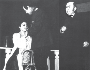 Көбөгөнов А. – Каренин, Вронский – Н. Кытаев, Анна Каренина – З. Молдобаева. Л. Толстой. «Анна Карени­на». Кыргыз Мамл. академиялык драма театры. 1960.
