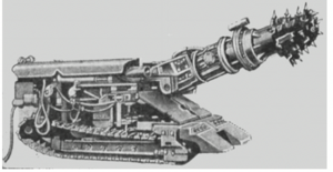Мында көмүр казуучу комбайн - тазалоочу, өткөөл жүргүзүүчүсү, өткөөлчү комбайн деп аталат. Комбайн көмүр катмарынын калыңдыгына жараша калың, орто, жука катмарды казуучу түрлөрдөн турат. Көмүр катмарларынын орун алышы б-ча горизонталдуу, жантайма, тик катмар казуучу комбайндарга бөлүнөт. Комплекстүү агрегаттар казылуучу катмардын төбөсүн өзү тиреп, бекитүү иштерин да аткарат. Суткасына 3000-5000 гкөмүр казып алууга болот. Өткөөлчү комбайн көмүр ж-а тоо тектеринен өткөөл жүргүзүүчү болуп бөлүнөт. Булардын ондогон түрлөрү бар.