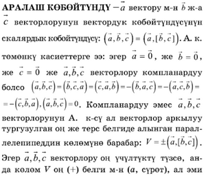 скалярдык көбөйтүндүсү: = (а,[6,с]). А. к.
