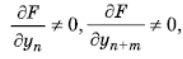 Failed to parse (SVG (MathML can be enabled via browser plugin): Invalid response ("Math extension cannot connect to Restbase.") from server "https://wikimedia.org/api/rest_v1/":): {\displaystyle {\partial F\over\partial y_n}\neq 0, {\partial F\over\partial y_n}\neq 0,}