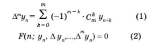 изделүүчү функ­циянын чектүү айырмасын камтыган теңдеме. | |||