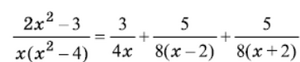 Failed to parse (SVG (MathML can be enabled via browser plugin): Invalid response ("Math extension cannot connect to Restbase.") from server "https://wikimedia.org/api/rest_v1/":): {\displaystyle <br> (2x^2-3)/x(x^2-4) =A/x+B/(x-2)+C/(x+2)<br> }