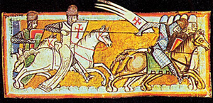 КРЕСТТҮҮЛӨР ЖОРТУУЛДАРЫ – 1096– 1270-ж. христиандардын ыйык жерлерин мусулман бийлигинен бошотуу урааны менен батыш европ. феодалдардын жана католик чиркөөсүнүн Чыгышка (Сирия, Палестина, Түн. Африка) карай баскынчыл согуштары. К. ж-на катышкандар кийимдерине крест белгисин тагыныш- Кресттүүлөрдүн ыйык жерге жортуулу (миниатюра, 1200). Гаага, Король китепканасы.