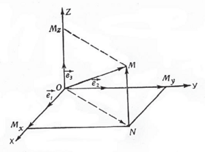 пендикуляр үч тегиздик аныктайт (2-чийме). Ага салыштырмалуу алынган М чекитинин абалы х, у ж-а z (апликата) координатары м-н аныкталат. О чекити эки учурда тең координаталар башталмасы деп аталат. Тегиздиктеги чекиттин уюлдук к оординаталары төмөнкүчө аныкталат: белгиленген О (уюл) чекитинен М чекитинин ОМ –r аралыгы ОМ ж-а ОР уюлдук огунун ортосундагы РОМ=q> бурчу боюнча бе-