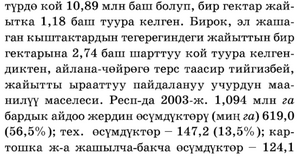 Table 1: Айыл чарба өсүмдуктөрүнүн дүң продукциясынын динамикасы, % менен (1990 - 2003-ж.)